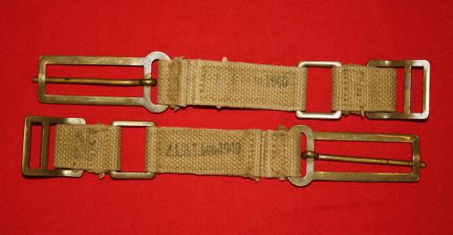For wear in place of the Bren Gun pouches. Typically found on officer webbing sets. These are marked ZL&T 1940. One has a clear C Broad Arrow remaining as well.