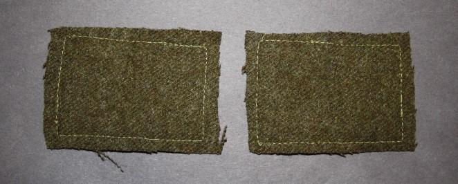 A fine matching pair of wool 4th Div patches sewn on pieces of BD. These have been cut away from a tunic at some point.